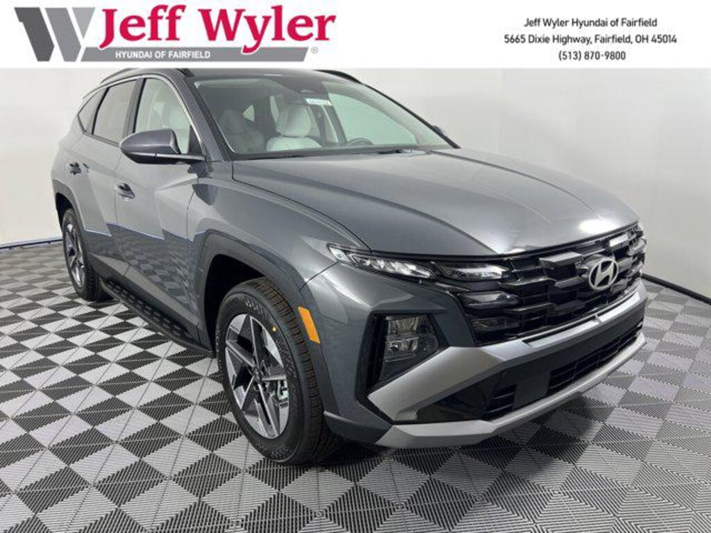 Priced below KBB Fair Purchase Price! 2026 Hyundai Tucson Ecotronic Gray SEL AWD 8-Speed Automatic with SHIFTRONIC 2.5L I4 DGI DOHC 16V LEV3-SULEV30 187hp AWD, Android Auto, Apple CarPlay, CALL NOW FOR YOUR VIP APPOINTMENT 513-870-9800, FULLY SERVICED w/RECORDS, GUARANTEED FINANCING!! NO MATTER YOUR SITUATION WE CAN GET AN APPROVAL!!, THE #1 Volume dealer in the region! Come see why for yourself Today!!, WE PAY MORE FOR YOUR TRADE!!. 24/30 City/Highway MPG Jeff Wyler Hyundai of Fairfield is proud to offer this good-looking 2026 Hyundai Tucson SEL in Ecotronic Gray. Well equipped with: Option Group 01, AWD, Android Auto, Apple CarPlay, CALL NOW FOR YOUR VIP APPOINTMENT 513-870-9800, FULLY SERVICED w/RECORDS, GUARANTEED FINANCING!! NO MATTER YOUR SITUATION WE CAN GET AN APPROVAL!!, THE #1 Volume dealer in the region! Come see why for yourself Today!!, WE PAY MORE FOR YOUR TRADE!!, 18" x 7.5J Alloy Wheels, 4-Wheel Disc Brakes, 6 Speakers, ABS brakes, Air Conditioning, Alloy wheels, AM/FM radio: SiriusXM, Apple CarPlay & Android Auto, Auto High-beam Headlights, Automatic temperature control, Brake assist, Bumpers: body-color, Cargo Net, Carpeted Floor Mats, Delay-off headlights, Driver door bin, Driver vanity mirror, Dual front impact airbags, Dual front side impact airbags, Electronic Stability Control, Emergency communication system: Bluelink+, First Aid Kit, Four wheel independent suspension, Front anti-roll bar, Front Bucket Seats, Front Center Armrest, Front dual zone A/C, Front reading lights, Fully automatic headlights, H-Tex Leatherette Seat Trim, Heated door mirrors, Heated Front Bucket Seats, Heated front seats, Illuminated entry, Low tire pressure warning, Occupant sensing airbag, Outside temperature display, Overhead airbag, Overhead console, Panic alarm, Passenger door bin, Passenger vanity mirror, Power door mirrors, Power driver seat, Power Liftgate, Power steering, Power windows, Radio data system, Radio: AM/FM/HD Audio System, Rear anti-roll bar, Rear reading lights, Rear seat center armrest, Rear side impact airbag, Rear window defroster, Rear window wiper, Remote keyless entry, Security system, Side Steps, Speed control, Split folding rear seat, Spoiler, Steering wheel mounted audio controls, Tachometer, Telescoping steering wheel, Tilt steering wheel, Traction control, Trip computer, and Variably intermittent wipers. Price includes: $2750 - Hyundai HMF Dealer Choice : $2750 discount and 5.49% APR for 24 months. $44.09 per $1000 financed. Available to well qualified buyers who finance through Hyundai Motor Finance. H704. Exp. 01/02/2026 $400 - College Graduate Program. Exp. 01/02/2026 $500 - Military Program. Exp. 01/02/2026
